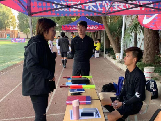 研究生刘畅同学(下图右二)被选派参加上海市校园足球联盟耐克冠军联赛,进行执法工作。