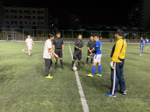 本科生郑靖韬同学(下图左一)被选派参加上同济大学教职工足球联赛,进行执法工作。