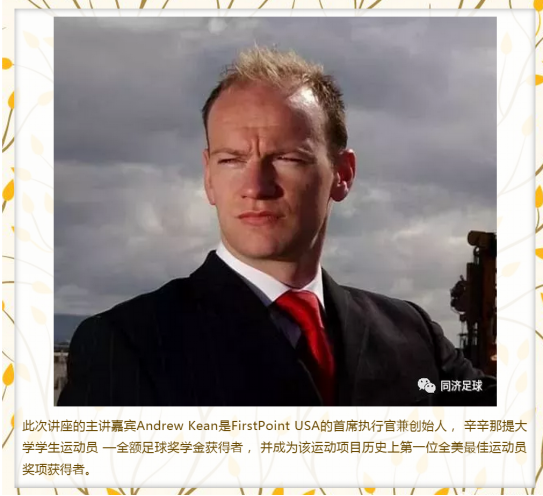 Andrew鼓励大家通过FirstPoint USA的平台申请奖学金,到美国进行深造。该机构是美国高校体育奖学金的世界领先人才选拔机构,获得了NCAA(美国大学生体育协会) 和AIRC(美国国际招生委员会) 的认证,为2500多所美国高校选拔、输送来自全球的体育人才。
